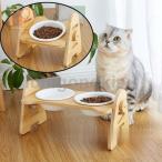 フードボウル 食器 猫用 犬用 フードボウルスタンド 竹製 陶器 台付き 猫食器 キャット ペット用 2連 1皿 2皿 小中型犬用 高さ調節可能 傾斜 餌やり ペット食器