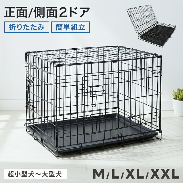 犬 ケージ 折りたたみ 2ドア 大型犬 中型犬 小型犬 S~XXL ペットケージ 屋根付き 室内 サークル ゲージ ドッグ クレート 車 ドライブ 移動 避難 防災 グッズ ハウス スチール 組立 設置簡単 工具不要 トレー付 即使用可能