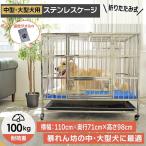 犬小屋 ケージ ステンレス 中型〜大型犬 ケージ 幅110×奥行72 屋根付き 頑丈 キャスター付 ペットハウス