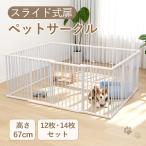 ペットサークル 犬 サークル スライド式ドア 省スペース 小型犬 中型犬 大型犬 多頭飼い ペットフェンス ドッグサークル 安全柵 高さ67cm パネル12/14枚セット