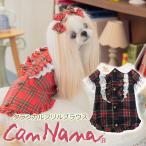 犬服 セーター ドッグウェア 白襟タータンチェックワンピース 秋 冬服 冬ワンピ きゃんナナ SS-Lサイズ ドッグウェアレッド グリーン CANNANA DOGWEAR
