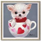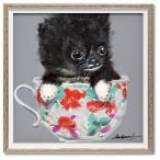 オイル ペイント アート ティーカップドッグ2 S 雑貨 アートポスター 額付 動物画 インテリア ユーパワー 33×33cm