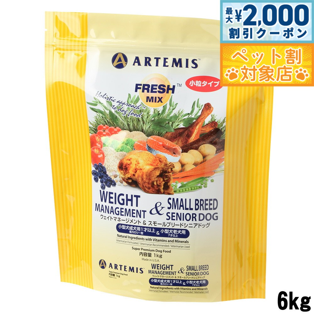 【15日限定エントリー&抽選でP100%+クーポン有】アーテミス フレッシュミックスウェイトマネージメント&スモールシニアドッグ 6kgおやつのプレゼント付き アーテミス ドライフード 犬用 【ドッグフード】【正規品】