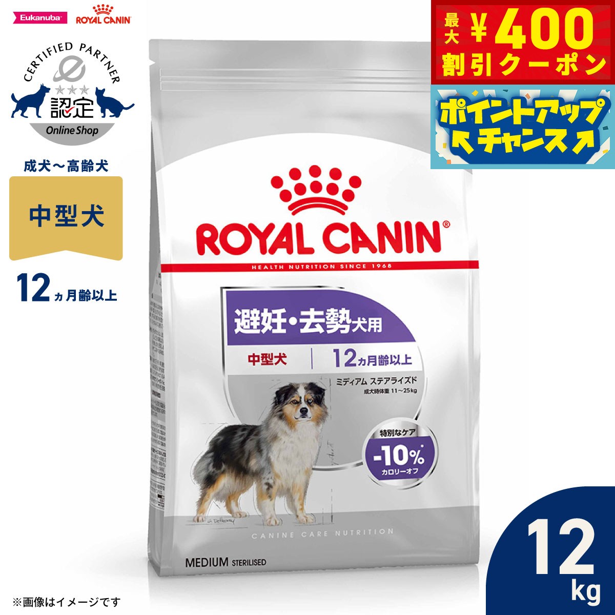 【400円OFFクーポン!&店内ポイント最大42倍!3月1日!】ロイヤルカナン 犬 ドッグフード ケーナインケアニュートリション ミディアムステアライズド 12kg 正規品 避妊 去勢犬用 中型犬専用 成犬〜高齢犬用
