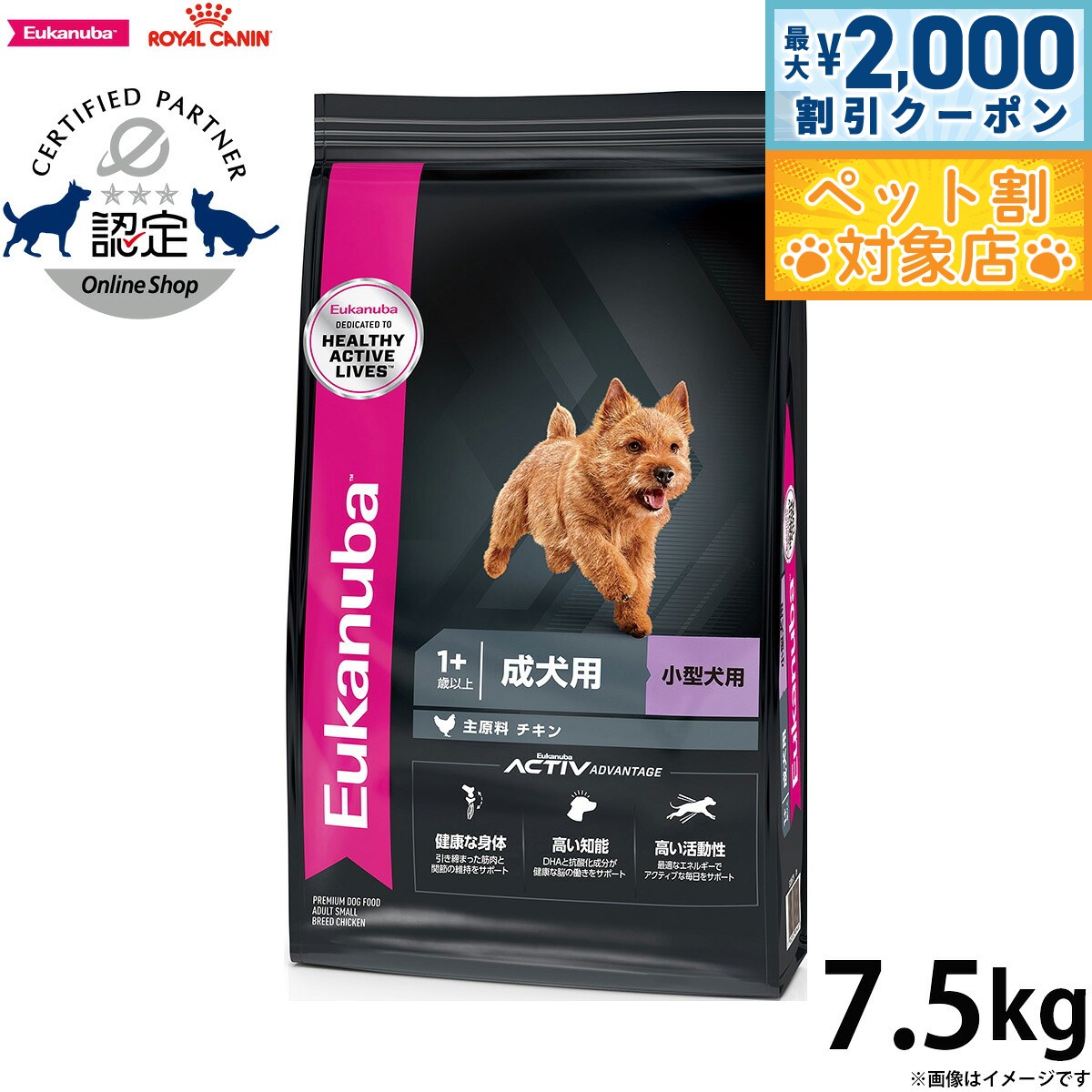ドッグフード ユーカヌバ スモール アダルト 7.5kg 成犬用 小型犬用 1歳以上 Eukanuba ジップ付 お一人様3点限り 関東当日便