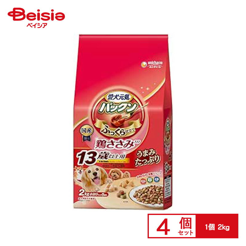 ドッグフード ユニ・チャーム 愛犬元気 パックン 13歳以上用鶏ささみ・緑黄色野菜・小魚 2kg×4個 | ドッグフード 13歳以上 高齢犬 シニア犬 小粒 国産 鶏ささみ 緑黄色野菜 小魚 まとめ買い ドライ 犬の餌 愛犬元気 ペットフード パックン 2.0kg