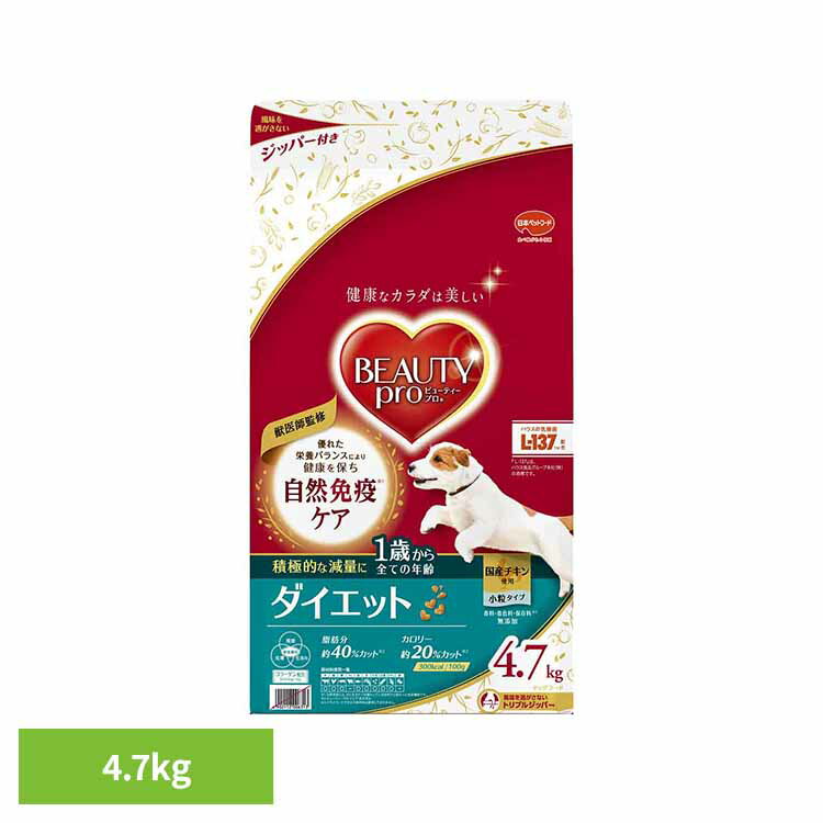 【10%OFF】ドッグフード ビューティープロ ドッグ ダイエット 1歳から ドライフード 成犬用 シニア 対応 総合栄養食 4.7kg 獣医師監修 着色料 香料 無添加 免疫力維持 ペットフード 犬 ご飯 チキン サクサク小粒 日本ペットフード * [2512SE]