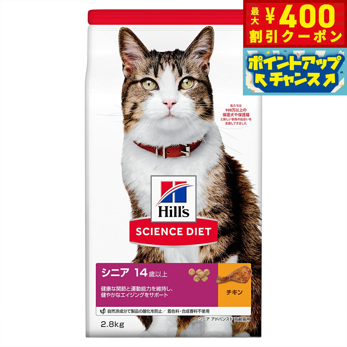 【2000円OFFクーポン!&店内ポイント最大56倍!スーパーSALE!】サイエンス ダイエット シニア チキン 高齢猫用 7歳以上 2.8kg ヒルズ キャットフード ドライフード 総合栄養食 着色料 香料不使用