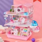 ハムスターケージ 大型 透明 2階建て KNK(株) 通気 広々タイプ 小動物 ハウス 小動物ケージ 安い かわいい ピンク/ブルー 飼育ケース