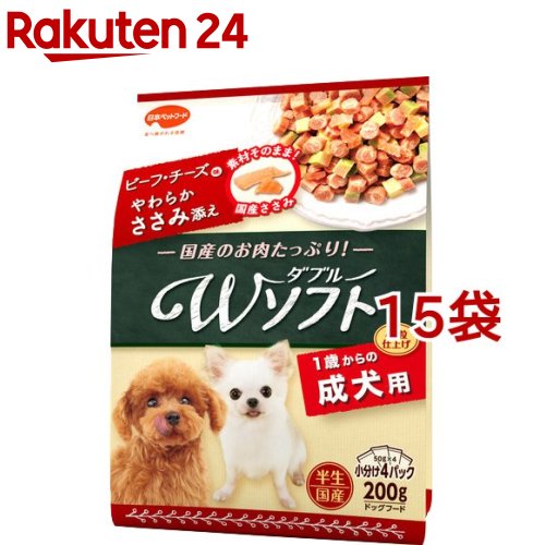 日本ペットフード ビタワン君のWソフト 成犬用 ビーフ・チーズ味・やわらかささみ添え200g×18袋