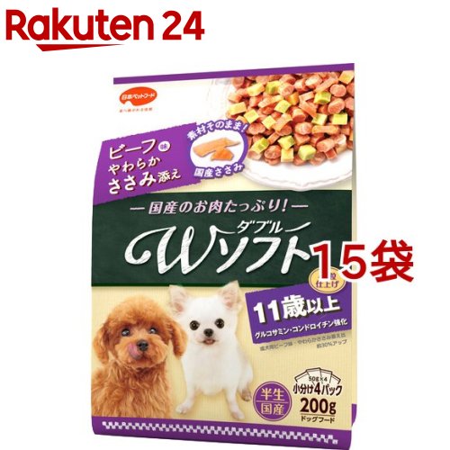 日本ペットフード ビタワン君のWソフト 15歳以上 ビーフ味・やわらかささみ添え 200g ×15個 ペット | ドッグフード シニア犬 ウェット 高齢犬 ビーフ やわらかい 小型犬 まとめ買い 犬餌 犬のえさ
