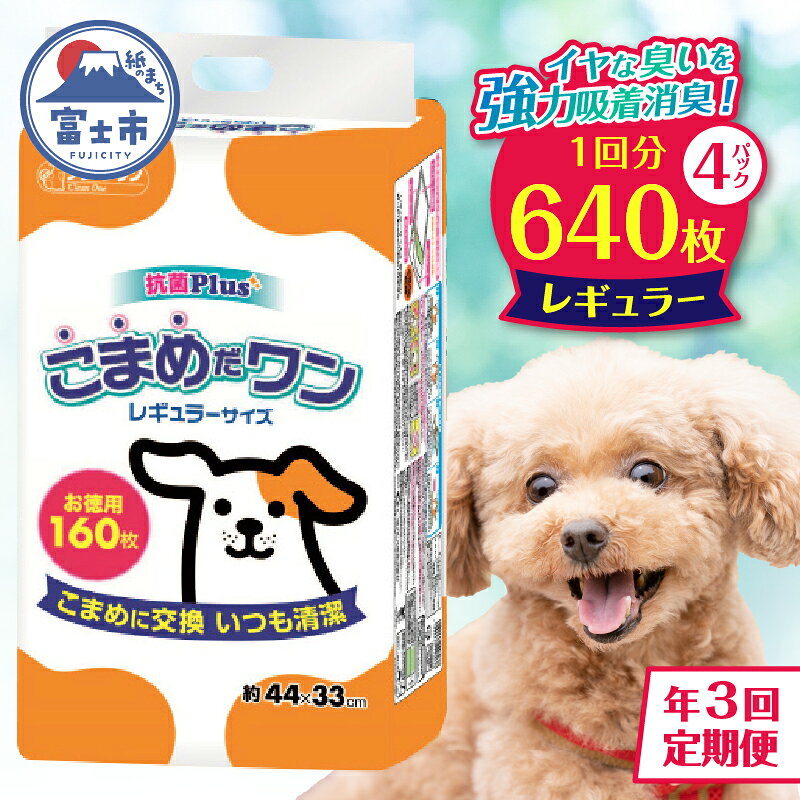 【ふるさと納税】 定期便 年3回 ペットシート 「こまめだワン」 レギュラー 640枚 (160枚×4パック) ×3回 こまめに交換 抗菌 いつも清潔 薄型 ペットシーツ クリーンワン シーズイシハラ 富士市 ペット用品 日用品 [sf002-278]