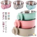 餌入れ ケージ 2個セット 猫 犬 フードボウル 水 ペット ご飯 食器 皿 給水器 給餌器 ハンガーボウル ステンレス 水飲み ゲージ 吊り下げ エサ入れ ペットケージ