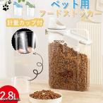 ペットフードストッカー 密閉フードストッカー 2L 2.8L ドライペットフード 計量カップ付き 大容量 透明 犬 猫 ペット 保存容器 ストッカー 透明 貯蔵タンク