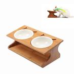 【小型 犬 猫 ペット用フードボウル】ペット食器台 自然木製 陶器お皿 ボウル2個セット 傾斜のあるご飯台 フードボウルスタンド 滑り止め付き ペット腰 関節首の