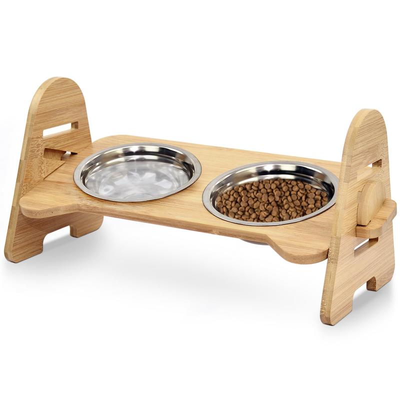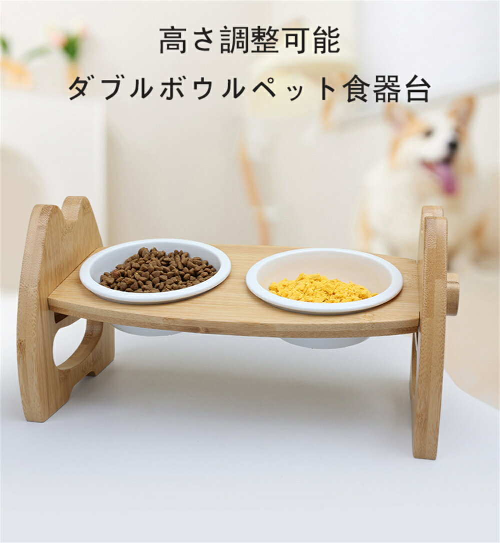 犬食器 犬餌入れスタンド 天然竹製 ペット用食器台 ペットボウル 猫用 15°傾斜食器台 フードボウル 餌 水入れ お皿 食べやすい ペット食器台 滑り止め 餌入れ お皿 ペット用品 2段階 pt011