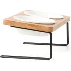 【並行輸入品】 FUKUMARU 犬猫用スタンド付きセラミック食器、15度の角度つき、ペット用竹製スタンド付き食器、猫、犬、ペット、猫用、犬用、ペット