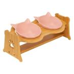 フードボウル 猫用 ペット用 食器 キャット フードボウルスタンド 竹製 陶器 台付き 猫食器 小型犬用 高さ調節可能 傾斜 餌やり 2連 2皿 3皿 ペット食器