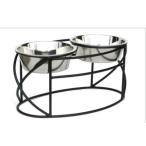 ※丸みがGOOD!※【アメリカPETSSTOP】シカゴからデザインがかわいいペット用品が登場!ペッツストップ ペット用食器 オーバルクロスダブルダイナー Mサイズ ブラック【大型犬 フードボウル 給餌器 デザイナーズ プレゼント】