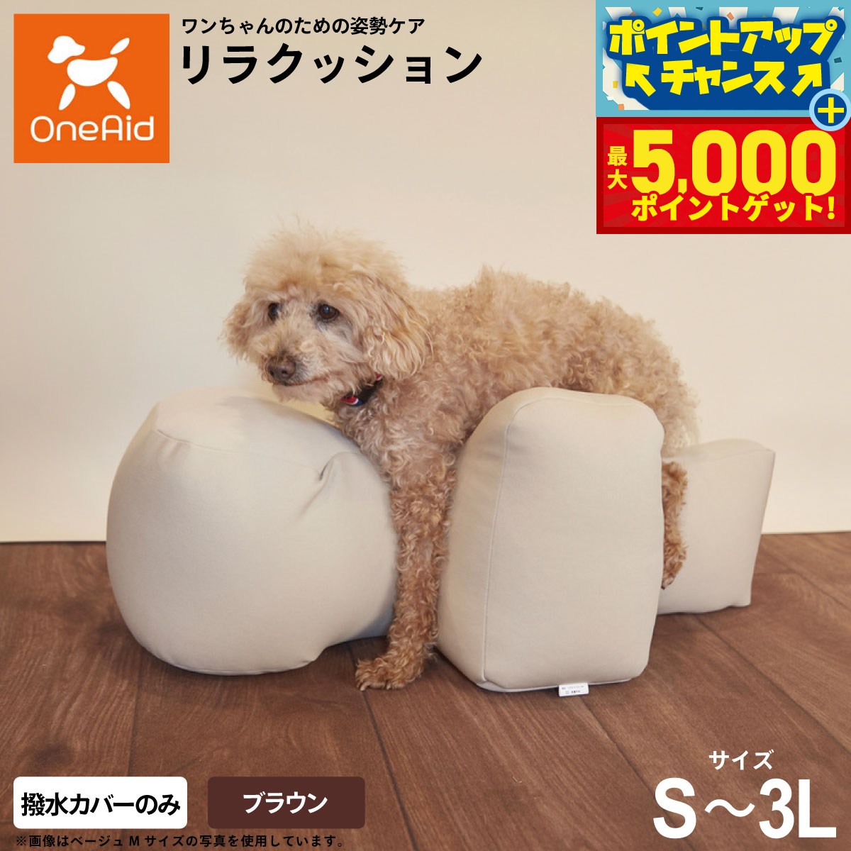 【本体別売】OneAid リラクッション 専用カバー Sサイズ ブラウン (クッション別売) ワンエイド 犬用 介護 介護用品 ベッド 姿勢安定 高齢犬 シニア犬 ペット 姿勢 誤嚥防止 床ずれ 防止 ※ 取り寄せ 商品のため日時指定不可 sat