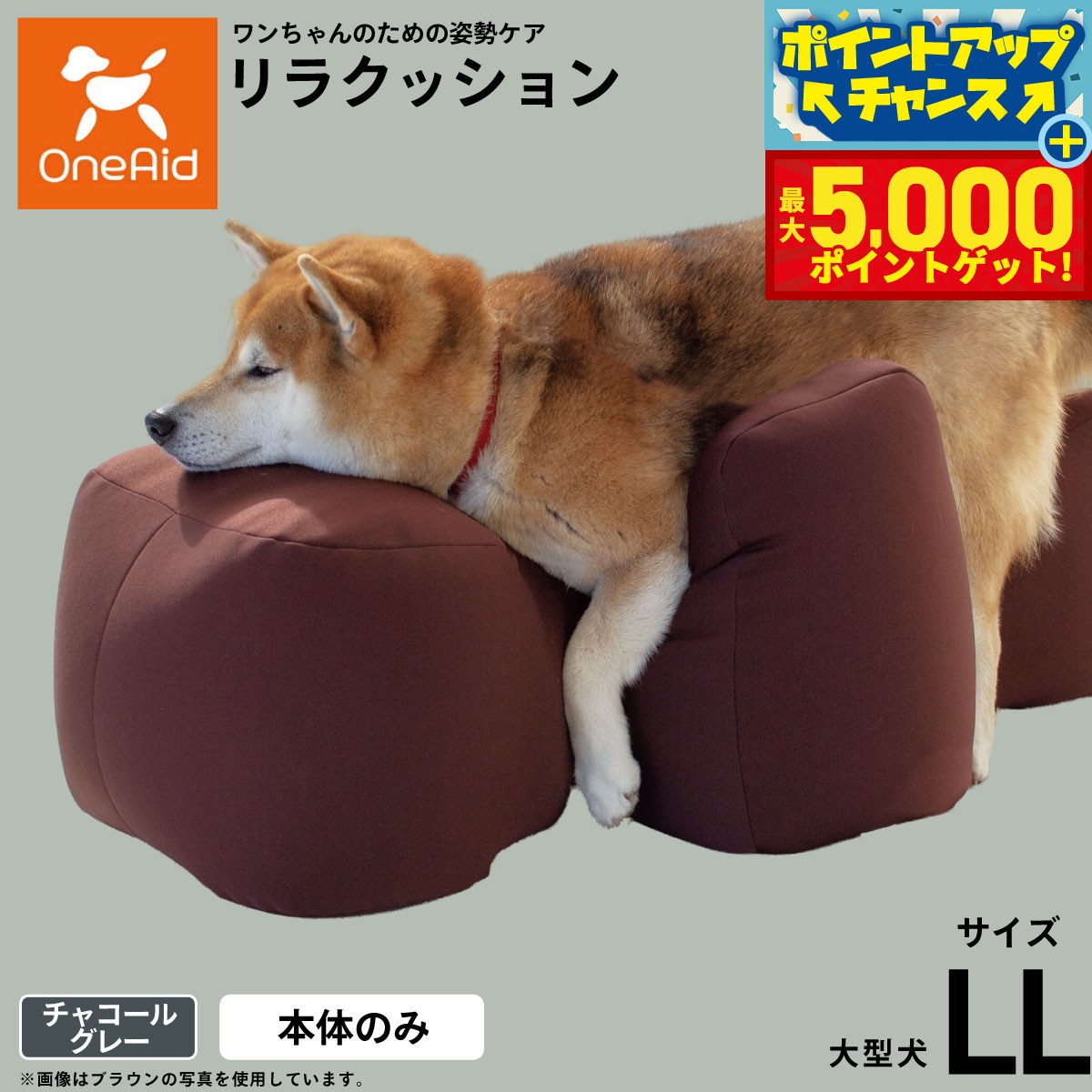 OneAid リラクッション LLサイズ 本体 大型犬用 チャコールグレー 成犬用 高齢犬用 シニア犬用 犬用介護用品 犬用看護用品 洗える 洗濯可 ワンエイド アロン化成