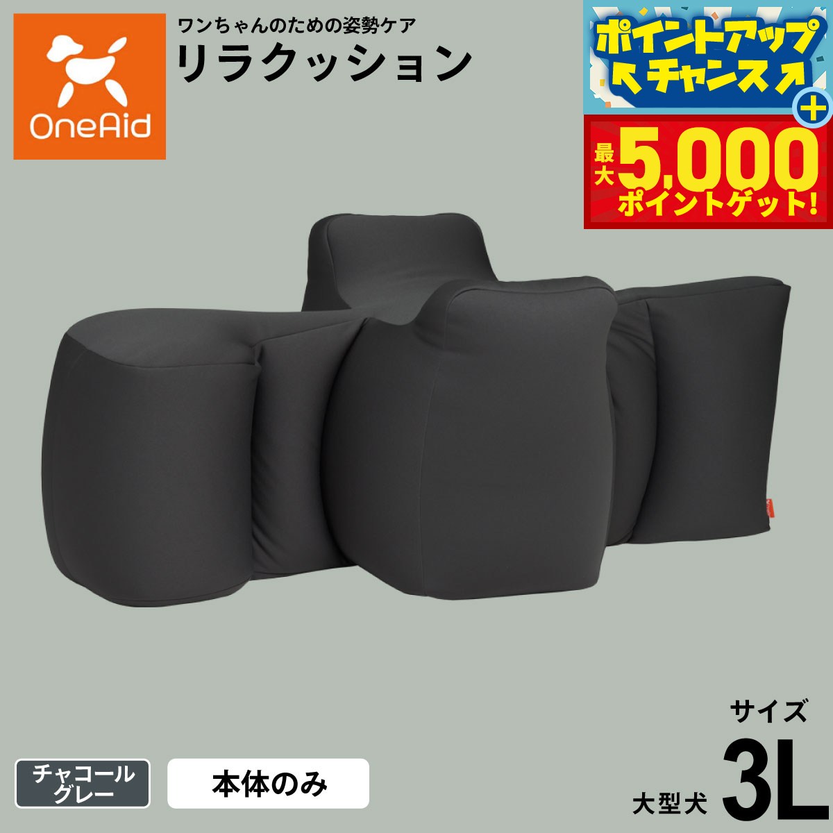 【最大5000ptバック!16日まで!】OneAid ワンエイド リラクッション 3L チャコールグレー【送料無料】犬用 介護 介護用品 ベッド 姿勢安定 大型犬用