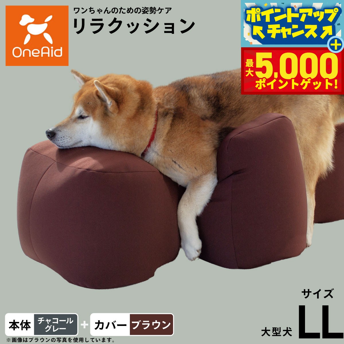 【最大5000ptバック!16日まで!】OneAid リラクッション 撥水カバーセット L ブラウン【送料無料】 犬用 介護 介護用品 ベッド 姿勢安定 中型?大型犬用
