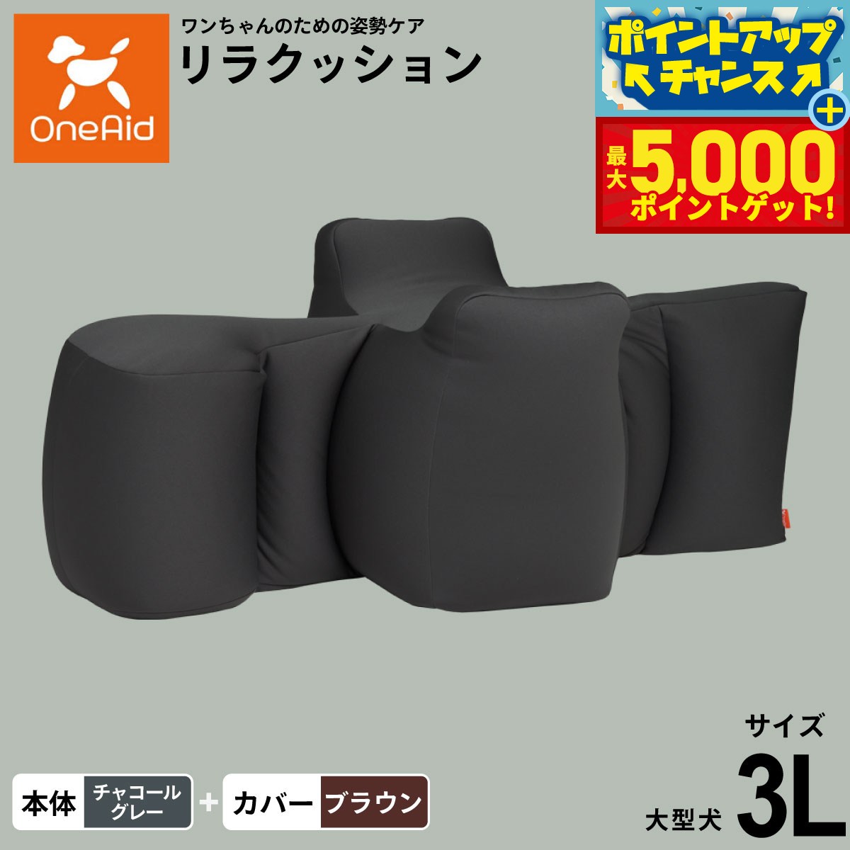 【最大5000ptバック!16日まで!】OneAid ワンエイド リラクッション 撥水カバーセット 3L チャコールグレー【送料無料】犬用 介護 介護用品 ベッド 姿勢安定 大型犬用