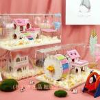 ハムスターケージ 小動物用ケージ クリアピンク・クリアブルー 組立式 飼育ケージ 通気性 内装食器 給水ボトル 可愛い 持ち運び 掃除しやすい エコなアクリル製 ペット用遊び場 小動物ハウス