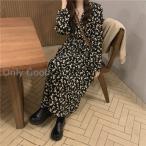 ワンピース レディース 40代 マキシワンピース 秋冬 長袖ワンピース 花柄 リボンネックワンピース シフォン フレアスカート オシャレ 結婚式ドレス 大人