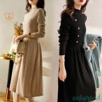 ニットワンピース レディース 40代 秋冬 長袖ワンピース パール 無地ニット ロング丈スカート フレア ニットインナー セーター オシャレ 韓国風 大人 上品