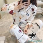 パジャマ レディース 秋冬 長袖パジャマ ロングズボン 綿 ルームウェア上下セット動物柄 Vネックパジャマ 可愛い 部屋着 韓国風 寝巻き 快適 安い