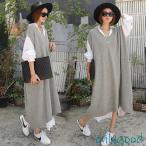 ニットワンピース レディース 40代 秋冬 ワンピース Vネック ニットロング ニットワンピース ひざ下 無地カジュアル ゆったり 韓国風 オシャレ