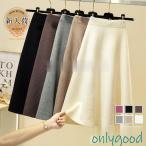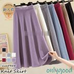 ニットスカート ロング丈 レディース 40代 秋冬 Aラインスカート 無地ニットスカート ミディアム丈 ハイウェストボトムス オシャレ大人 通勤 OL 上品 着痩せ
