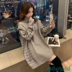 ニットセーター レディース 秋冬 40代 長袖ス チェック柄切り替えニットワンピース ハイネック ミディアム丈ニット プルオーバー ゆったりセーター