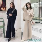 ニットセットアップ レディース ゆったり ニットス ニット ワンとパンツ セットアップ 秋冬 無地セーター カジュアル 韓国風 オシャレ