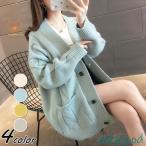 ニットカーディガン レディース 秋冬 長袖ニットコーディガン ロングコーディガン vネックカーディガン 無地セーター ゆったりニットアウター おしゃれ 韓国風
