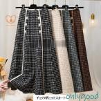 ニットスカート ロング丈 秋冬 Aラインスカート チェック柄ニット フレアスカート レディース 40代 aラインスカート マキシ丈 ハイウェストボトムス オシャレ