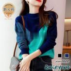 ニットス レディース 秋冬 40代 長袖セーター クルーネックセーター 配色 ゆったりプルオーバーニット オシャレ韓国風 大人ニットインナー 30代 50代