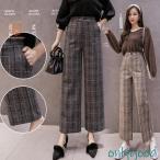 ワイドパンツ レディース 秋冬 九分丈パンツ ラシャズボン ストレートズボン チェック柄 厚手 ゆったり 大きいサイズ 30代40代50代 カジュアル ボトムス 着痩せ
