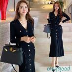 ニットワンピース レディース 40代 秋冬 長袖ワンピース 黒 Vネックセーターニット タイトスカート ロング丈 ニットインナー オシャレ 韓国風 大人 新作