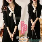 ニットワンピース 40代 オシャレ ニットワンピース ロング 秋冬 ニットワンピース リボンネックスカート 黒 ニットインナー セーター ゆったり 韓国風 大人