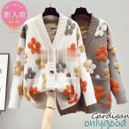 ニットカーディガン レディース 秋冬 40代 長袖セーター 花刺繍Vネック ミディアム丈セーターアウター ゆったりプルオーバー オシャレ韓国風 大人ニット厚手