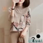 ニットス レディース 秋冬新作 40代 長袖 ニットス プリント切り替えセーター ショット丈ニットソー ゆったりプルオーバー おしゃれ 50.代 30代