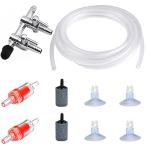 CTRICALVER 水槽 セット ソフトなチューブは3m エアチューブ2分岐 & 逆流防止弁& エアーストーン 4個 水槽 吸盤 アクアリウム