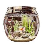 透明な小さな金魚タンクガラス水槽を見る丸い大型 C&J コンテナミニクリエイティブシェイプ水草が付いている家の装飾 30cm