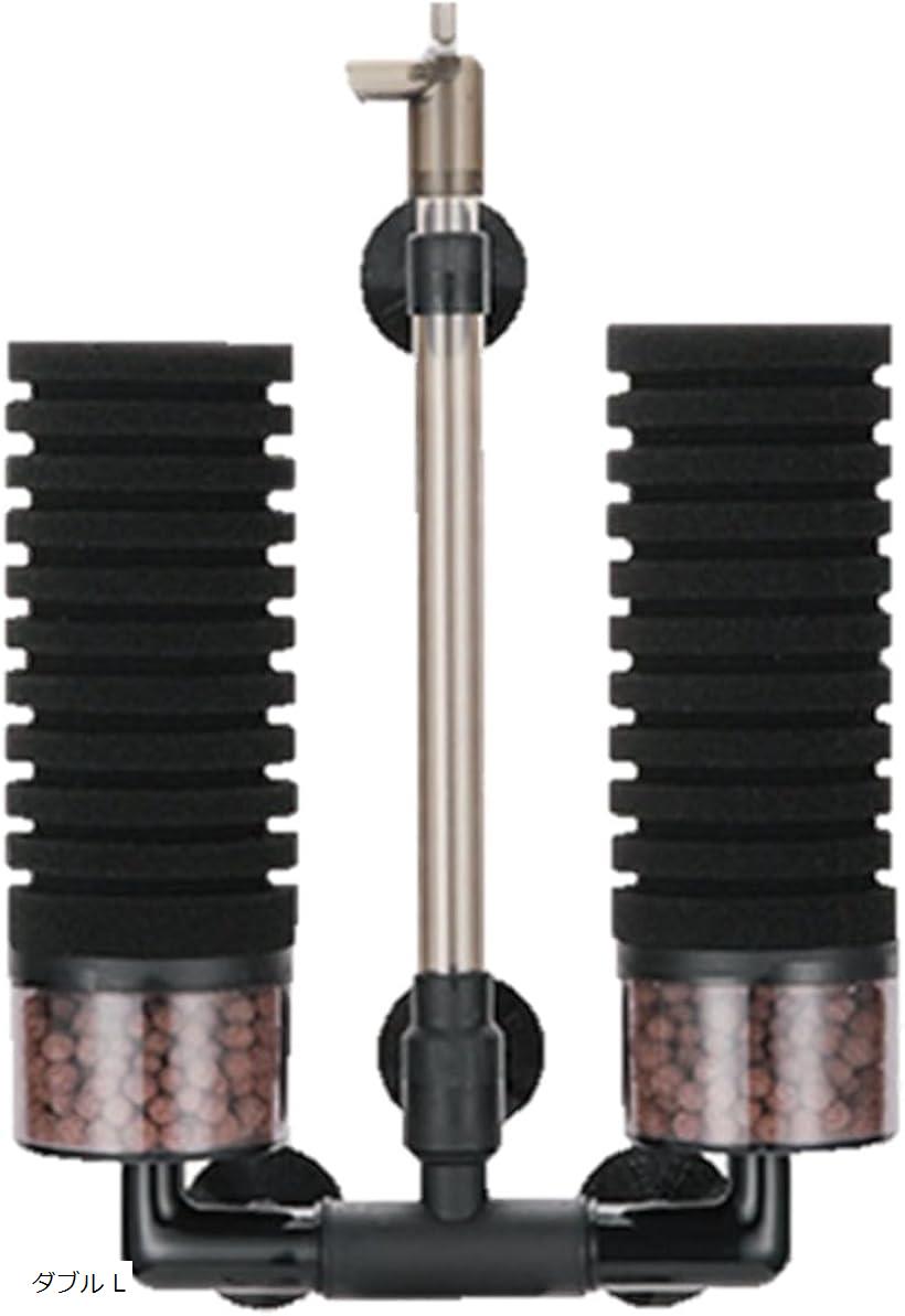 バイオスポンジフィルター 多孔質 ろ材入り 簡単設置 アクアリウム 水槽 ろ過 バクテリア 熱帯魚 金魚 メダカ エビ ダブル L (なし, ダブル L)