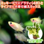 (熱帯魚)(水草)ブルー・ミッキーマウスプラティ(4匹)+ライフマルチ(茶) 寄せ植えミックス(水上葉) 1個 北海道・九州航空便要保温