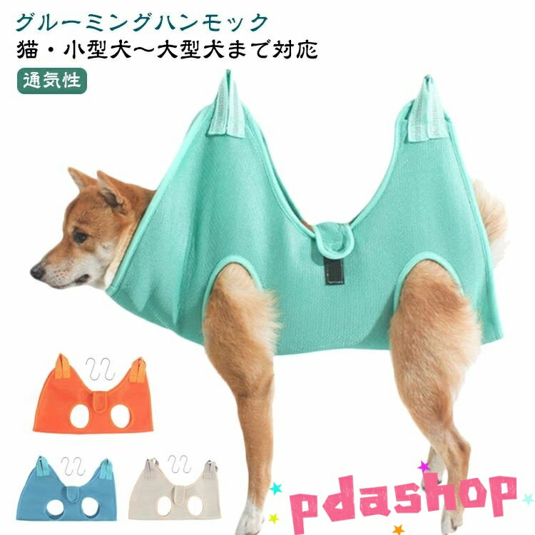 【全品2点で5%OFF】ペット グルーミング ハンモック 爪切り 犬 猫 トリミング 耳掃除 体拭き 小型犬 中型犬 ペット用品 拘束バッグ ハーネス グルーミングハンモック S字フック付き ペット美容 お風呂 入浴 ドライヤー 歯磨き 服薬 目薬 介護 吊り下げ メッシュ 通気性