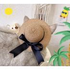 犬用 猫用 麦わら帽子 黒リボン M / ストローハット ペット用アクセサリー チワワ トイプードル 柴犬 コーギー ビーグル シーズー ミニチュアダックス